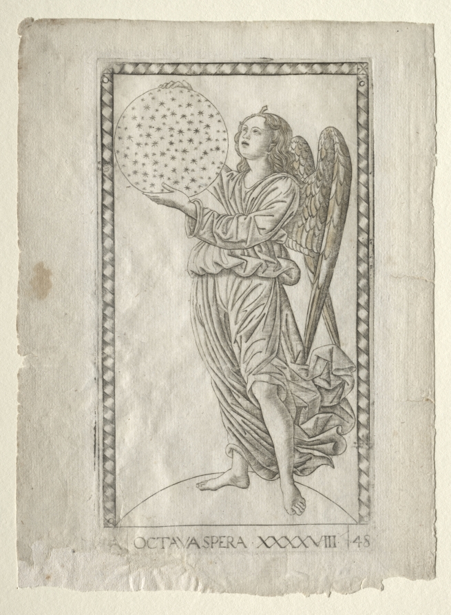 The Angel of the Eighth Sphere (from the Tarocchi, series A: Firmaments of the Universe, #48), before 1467. Master of the E-Series Tarocchi (Italian, 15th century). Engraving; The Cleveland Museum of Art, Dudley P. Allen Fund 1924.432.48