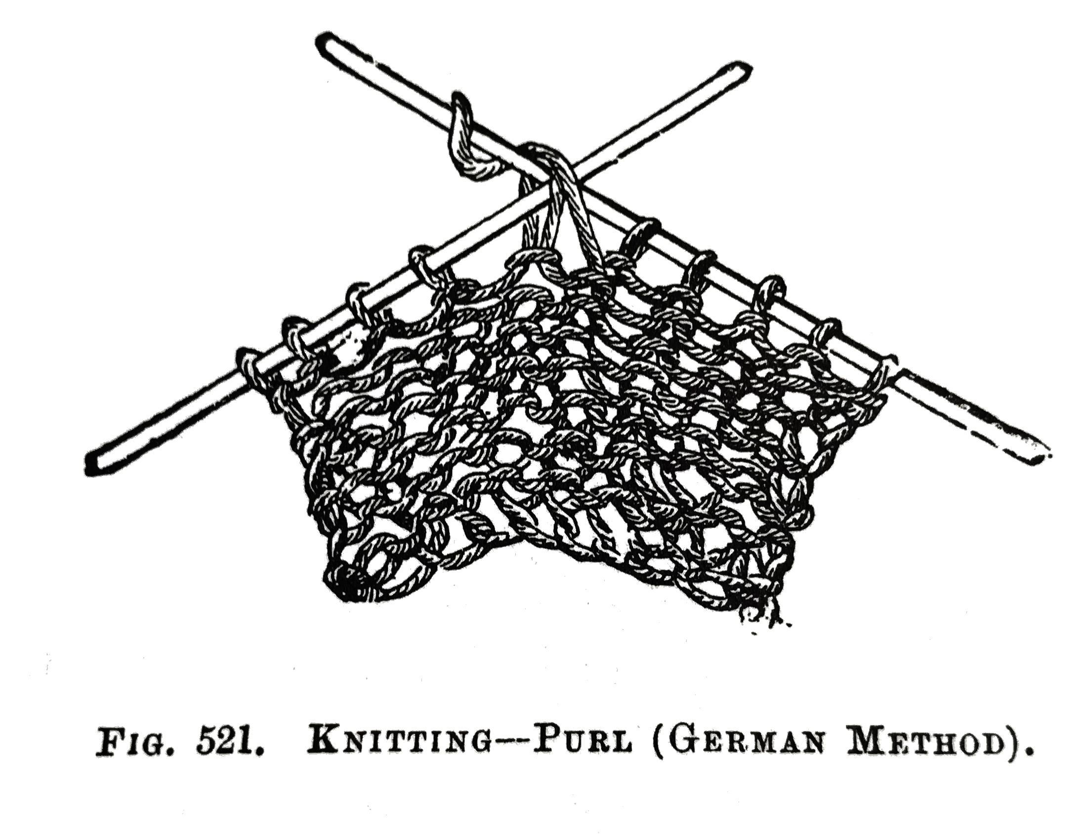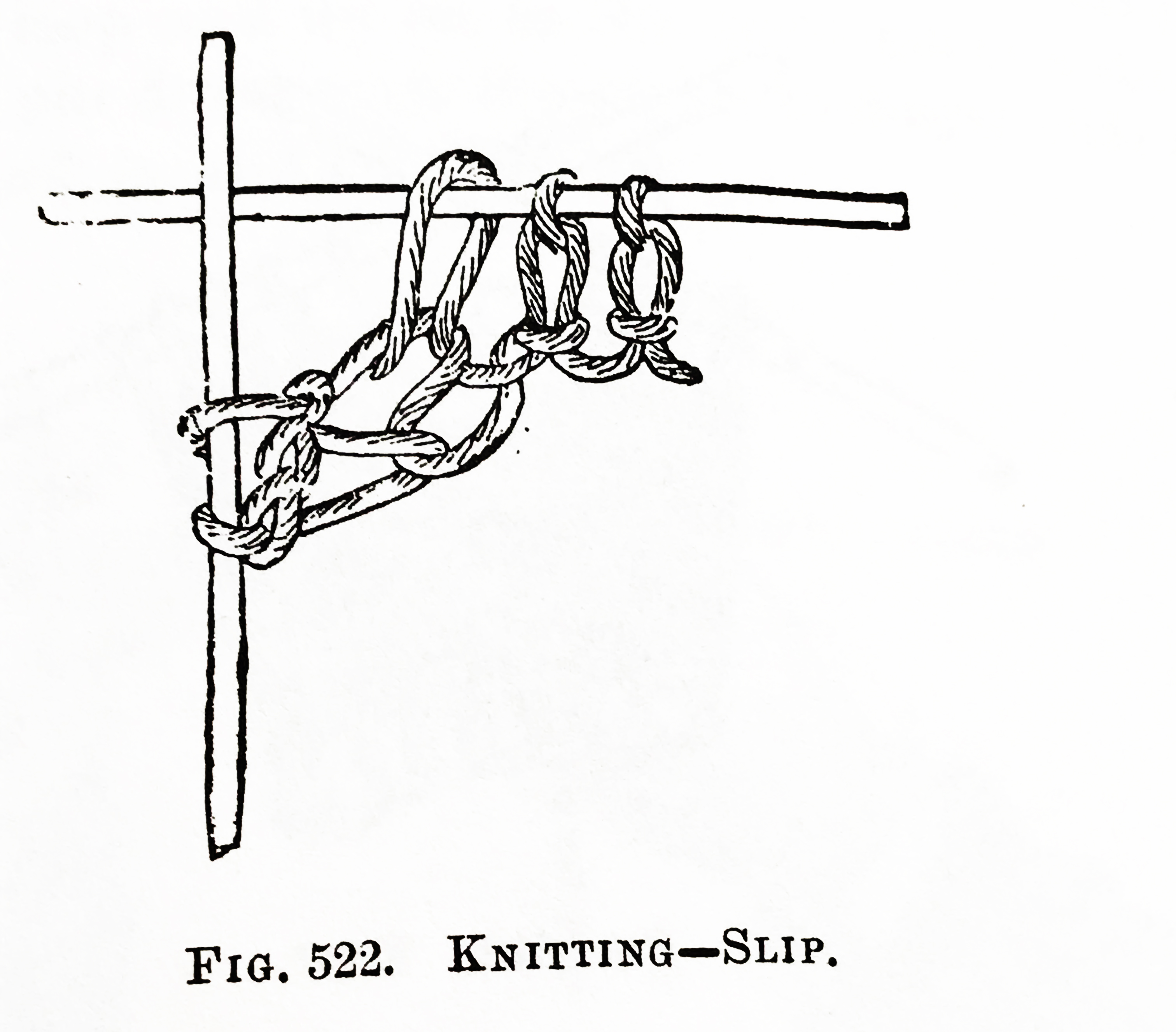 Stitches are Dropped in Knitting for the purpose of making open spaces, or when Decreasing; but no stitch should be Dropped unless it has been caught, and will not unravel the work.