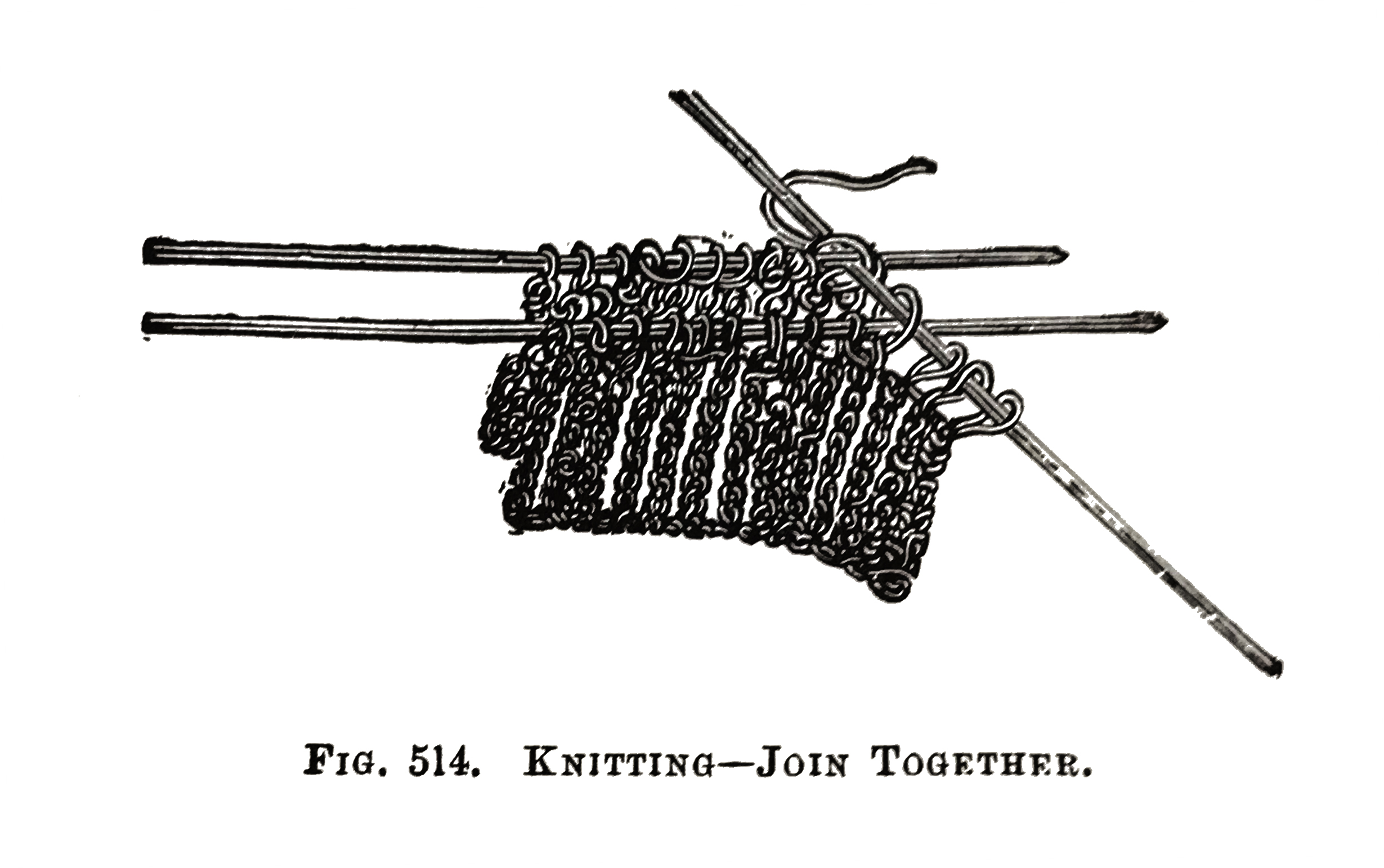 There are several ways of Decreasing, and the methods are also known as Narrowing, or Taking in; but when the word Decrease is used in the instructions without other explanations, it is understood to mean KNIT two stitches together. To Decrease see Fig. 507.